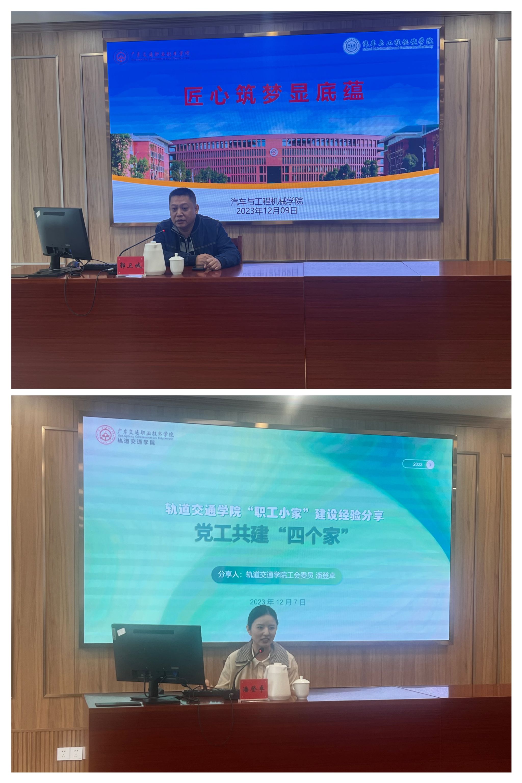 在经验分享环节,汽车与工程机械学院分工会、轨道交通学院分工会分别进行2023年广东省工人先锋号获得者、2022年广东省交通工会支持的“职工之家”建设单位经验交流。