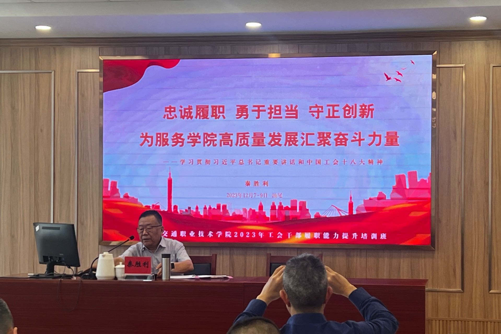 秦胜利以《以忠诚履职、勇于担当、守正创新,为服务学院高质量发展汇聚奋斗力量——学习贯彻习近平总书记重要讲话和中国工会十八大精神》为题,与大家一起学习习近平总书记在与全总新一届班子成员集体谈话时重要讲话精神和中国工会十八大精神。秦胜利要求工会干部要提高站位,在思想引领上有新作为;敢于担当,在服务大局上有新作为;履职尽责,在联系群众上有新作为;用心用情,在维权服务上有新作为;守正创新,在工会建设上有新作为。