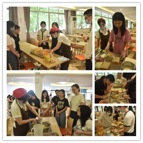 “端者,始也;午者,五也”、“彩线轻缠红玉臂,小符斜挂绿云鬟”……端午节总是充满文学情怀与民俗趣味。又到一年端午时,为了贯彻落实党的二十大精神和习近平总书记关于传承中华优秀传统文化的重要论述,更好地发掘、传承和创新端午节的文化内涵,不断丰富教职工文化生活,营造端午节文化氛围,引导教职工了解传统节日、认同传统节日、喜爱传统节日、过好传统节日,党政机构和教辅机构两个二级工会于6月19日下午联合举办端午节包粽子、点心烘焙以及艾草香囊缝制手艺制作等活动。