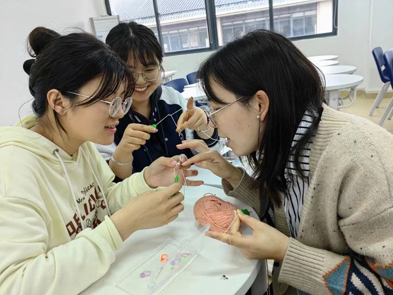 编结是人类最古老的手工技艺之一。100多年前,绒线编结技艺主要从欧洲传入中国沿海城市,中国的手工艺人将东方传统结绳技法与绒线编结技艺相结合,大大丰富了绒线编结的针法、花样、载体和应用场合,2009年“海派绒线编结技艺”被市政府列入上海市非物质文化遗产名录。2022年北京冬奥会上的“海派绒线编结技艺”颁奖花束,被称为“永不凋谢的奥运之花”。学院工会开设海派绒线编结非遗班,老师们通过绒线编结方法、编结技术、基本针法等学习,掌握了独立编织作品的技巧,感受了海派文化独特的精致内涵,致敬了精益求精的工匠精神。