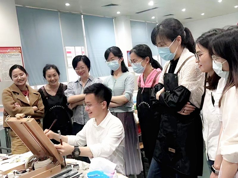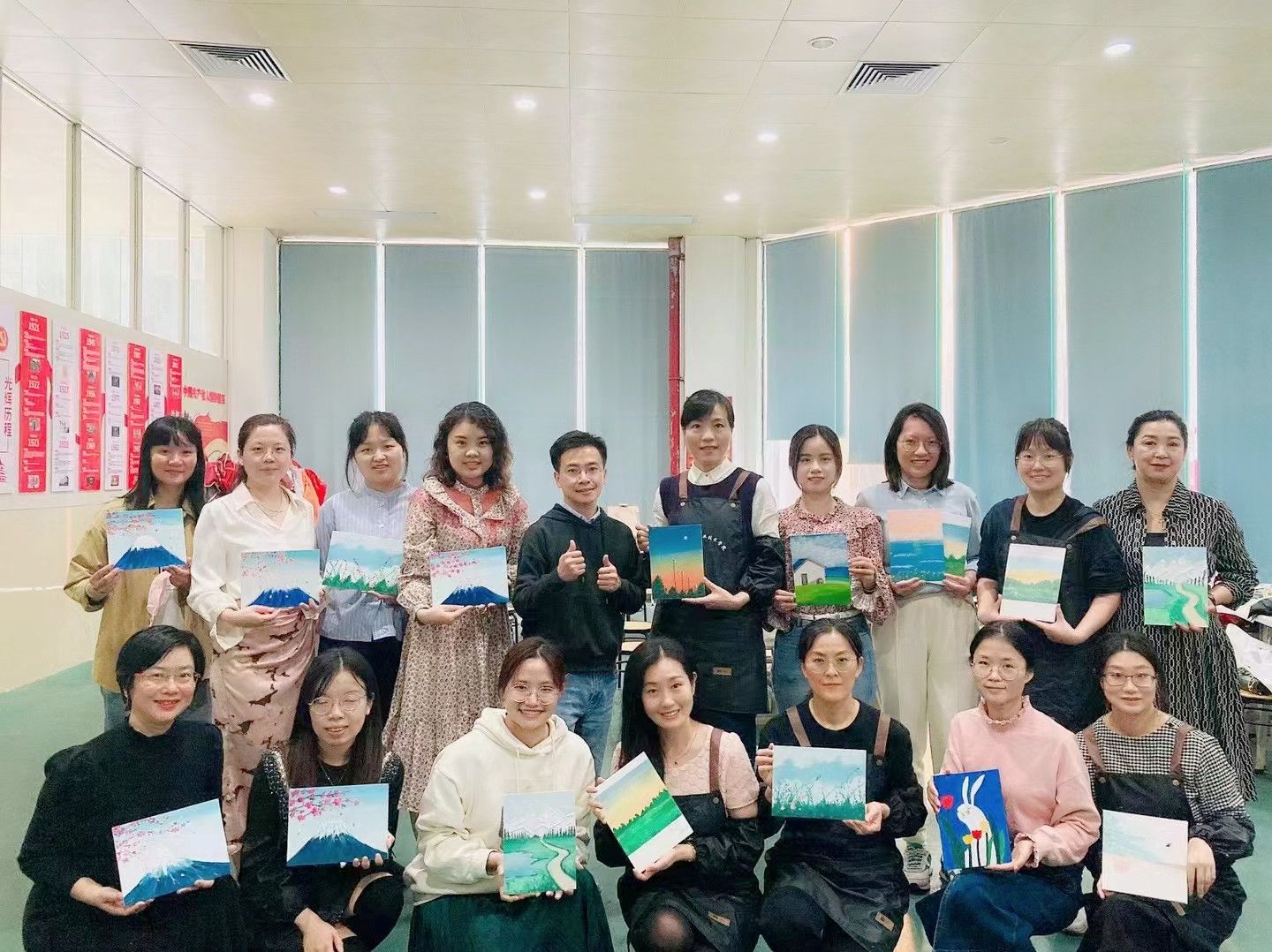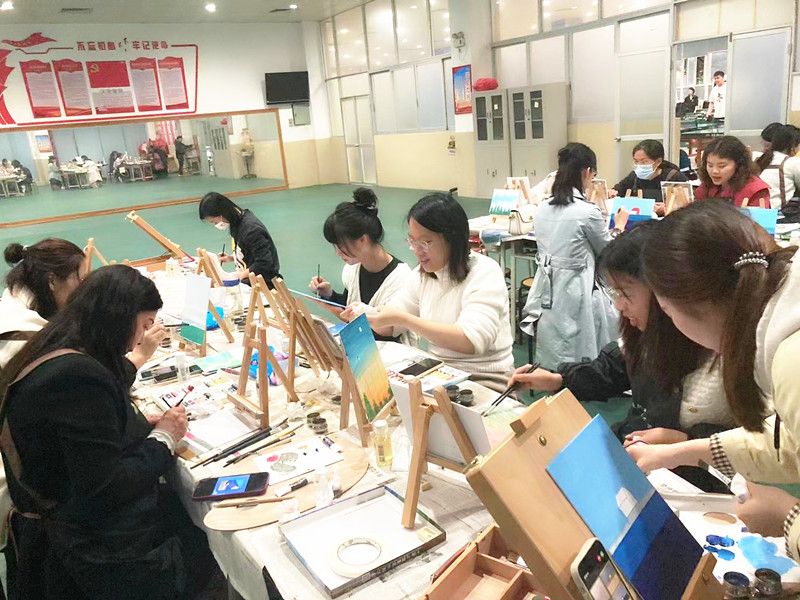 油画有着反映社会生活、认知、教育和审美功能,能够反映现实的生活,表现真实的人性,是对客观事物的描绘及主观情感的传达。学院工会通过开设智绘油画班、溢彩油画班2期共3个兴趣班,组织教职工从最简单的运笔、构图、调色开始,逐步掌握油画艺术的基本原理和绘画技巧,使老师们的审美能力、创新能力、想象力以及认知新鲜事物的能力均得到较好的锻炼与提升,老师们不仅增强了动手能力,还实现了创新思维的发散,提高了教师人格的塑造。