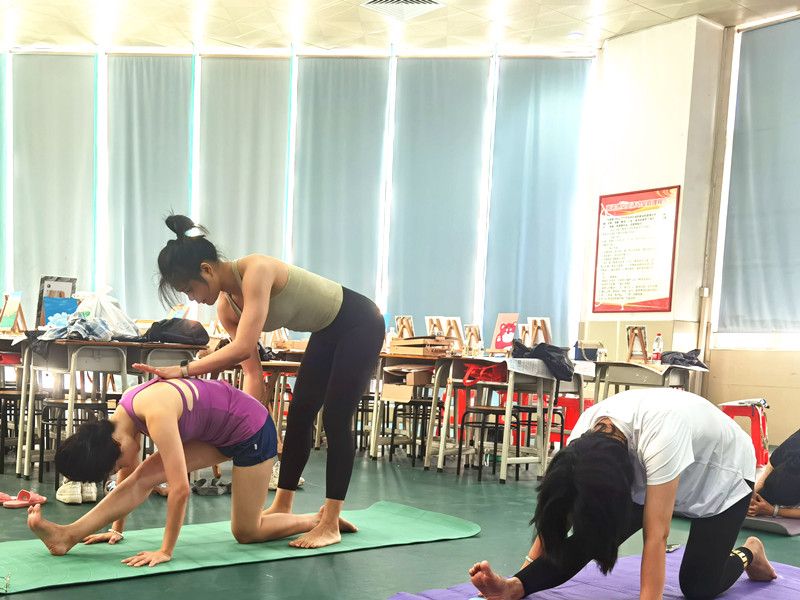 瑜珈是一项有着5000年历史的关于身体、心理以及精神的练习,是一个非常古老的能量知识修炼方法,集哲学、科学和艺术于一身,通过各种体式、调整呼吸频率和深度,增强肌肉力量和柔韧性,改善心肺功能,促进血液循环,改善消化系统,调节内分泌系统,有利于促进人体血液循环、增强心肺功能。学院工会开设舒压瑜伽班、浸心瑜伽班共2期兴趣班,为教职工提供了静中有动、动中有静的正确安全有效的全身训练瑜伽课程,老师们通过体式、呼吸、冥想的练习,达到身心平衡、减轻压力,释放情绪、缓解焦虑。