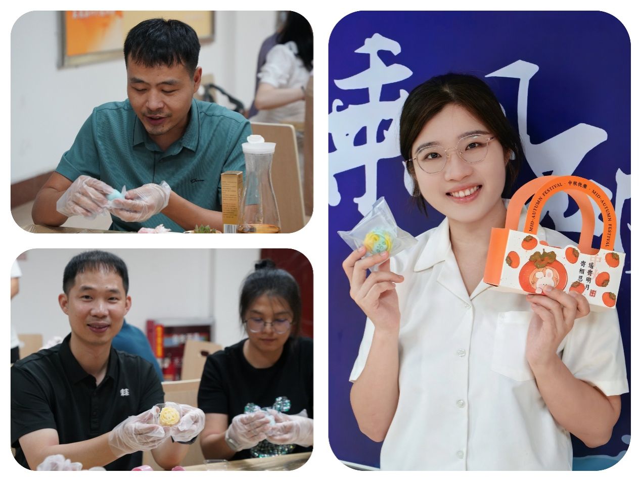 月圆情更浓,手作传心意。当面粉与馅料的香甜相互交融,节日氛围越发温馨浓厚。揉面、擀皮、包馅、定模,老师们们全神贯注地完成着每一道工序,一双双巧手在面团与馅料之间灵活舞动,每一个动作都凝结着奇思妙想,每一步都充满了技巧与艺术感,一个个精巧玲珑、独一无二的冰皮月饼饱含了老师们对团圆的愿景。月饼的香甜与冰皮的滑腻,不仅满足了味蕾,更温暖了彼此的心。