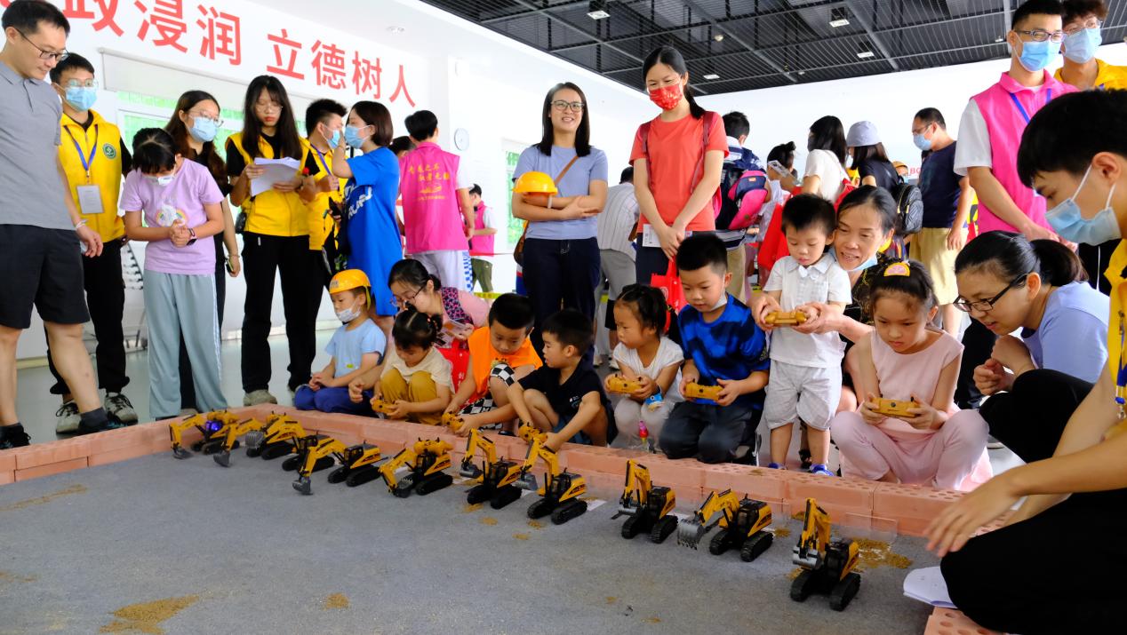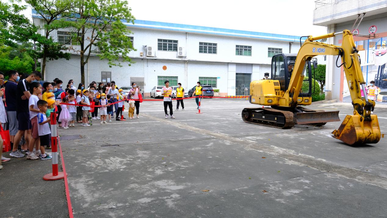 随后,全体家长和小朋友到29栋汽检楼观看工程机械挖掘机工作演示、巴哈越野赛车展示和EC电动赛车驾驶表演。工程机械专业的学生通过前期练习操作挖掘机精准堆砌积木,巴哈、EC车队的学生开着自主研发的越野赛车和电动赛车在赛道上驰骋,科技感和精益求精的工匠精神赢得现场呼声、掌声不断,小朋友们大开眼界,目不转睛的惊呼:“哇,好酷啊”,“哥哥加油!”对车队带来的精彩表演感到新奇又有趣。
