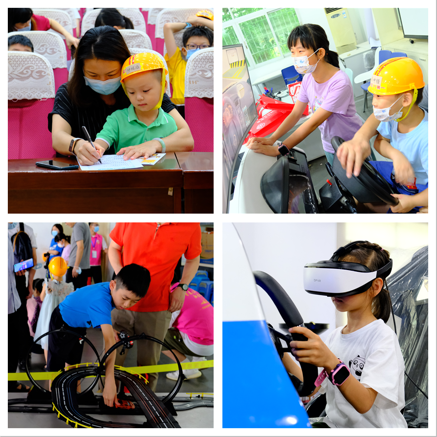 观看完表演后,在室内进行亲子游戏时间,活动内容有模型挖掘机挖沙游戏、VR模拟机和驾驶机体验、竞速轨道赛车比赛。孩子们分组参加游戏进行比赛,家长们带着孩子积极体验游戏,在动手实践中增进亲子感情,在体验汽车科技知识中增长孩子们的动手能力和创新能力。最后,家长和孩子们一起将体验活动和内心感受描绘成一幅可爱的庆祝图景,全体家长、孩子和工作人员携手画作留下了欢乐的合影。