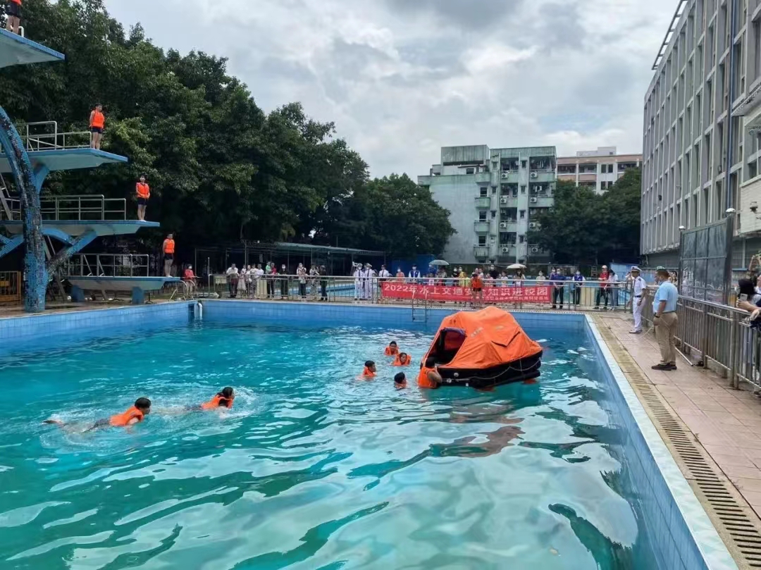 第五站:水上求生表演。水上求生是人类进入文明社会后,随着社会的发展和人类活动的需要而产生的。水上求生表演主要是展示跳水、登上救生筏、溺水急救等技能。