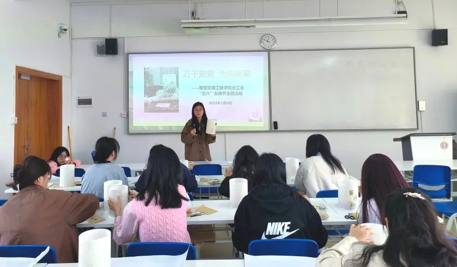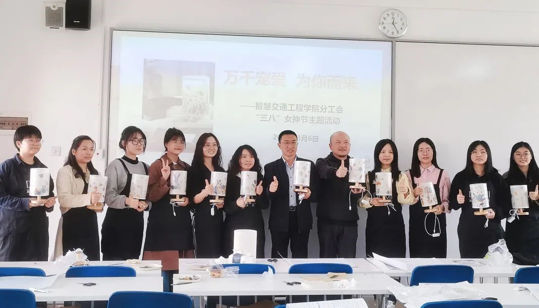对美好事物的鉴赏总是相通的,智慧交通工程学院分工会也举办了主题为“巾帼风采花漾芳华”的台灯花艺活动。经花艺老师对台灯花艺的介绍与教学,女教职工们兴致昂扬、精心细心研究制作,轻松愉快的氛围中,老师们完成了一个个富有创意的精美作品,充分体现了广大女职工在日常工作中的细致、谨慎,以及团结与奋进。