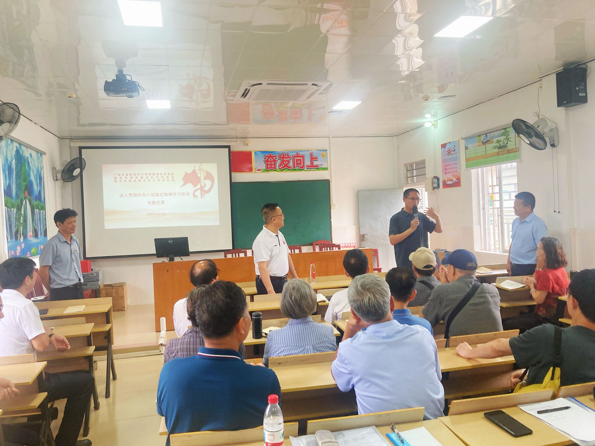 离退休党总支书记秦胜利同志在学习班上结合学习习近平总书记关于学习党的作风建设的重要论述和给“银龄行动”志愿者代表的回信精神,强调要把组织离退休干部党员参加中央八项规定精神学习教育与贯彻落实全国、全省离退休干部“双先”表彰大会精神结合起来,与深化拓展“红霞增辉耀南粤”系列活动、开展“学回信精神·助改革发展”结合起来,组织引导广大离退休干部党员参与“银龄行动”,在推进粤港澳大湾区建设、产业科技互促双强、“百县千镇万村高质量发展工程”、绿美广东生态建设等重点工作中献智献策,在弘扬党的光荣传统、传承优良作风、加强基层治理、关心下一代等工作中贡献银发力量。