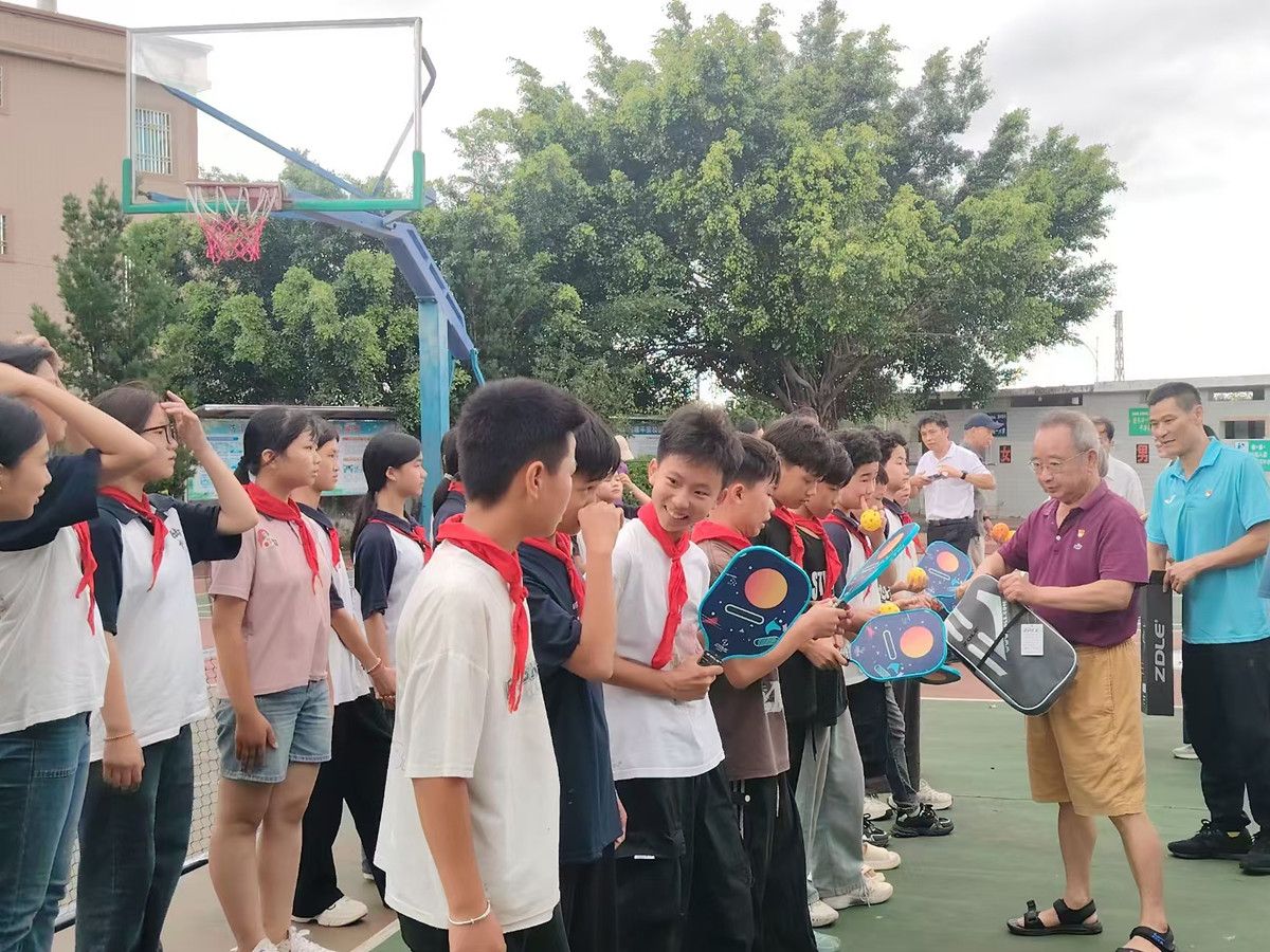 为落实教育部“体育浸润行动计划”,支持参与学院“双百行动”走深走实,6月17日,学院组织部分离退休老同志与教职工匹克球俱乐部专业教练赴学院对口帮扶的点石小学开展“银龄党员助双百 体育浸润点石苗”送教上门活动。