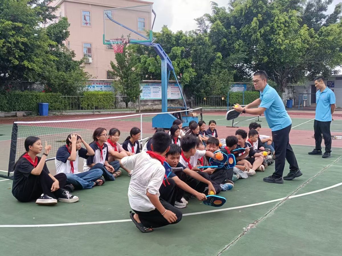 学院向点石小学捐赠了一批专业匹克球器材套装,匹克球教练温才铭、方俊伟老师为同学们开展了沉浸式匹克球教学,通过动作示范、分组练习等方式,传授运动技巧,为乡村学子打开了接触新兴运动项目的窗口,以体育人,以体育智。