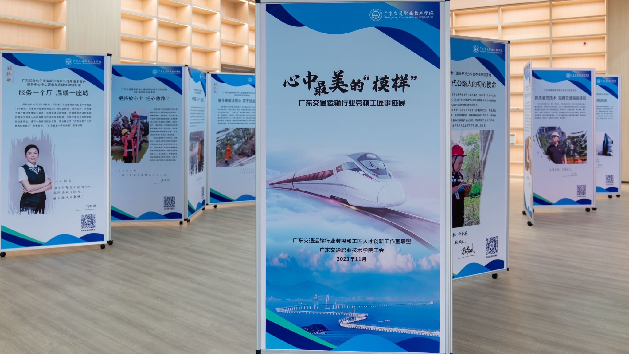 为进一步落实党的二十大和中国工会十八大精神,落实习近平总书记关于“大力弘扬劳模精神、劳动精神、工匠精神”的重要指示精神,推动劳模工匠进校园,近日,由学院工会编辑制作的广东交通系统劳模工匠事迹在清远校区图书馆一楼展出。